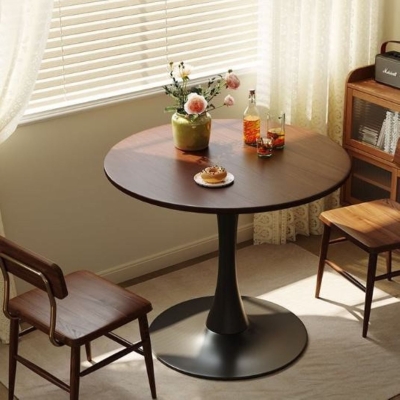 Modern Round Dining Table with Modern Design, MDF Top with Steel Base, Easy Assembly and Cleaning, 23.5" L x 23.5" W x 29" H, Walnut