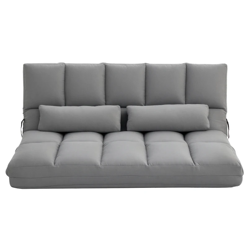 HOMCOM Convertible Floor Sofa Chair, Folding Couch Bed, Guest Chaise Lounge with 2 Pillows, Adjustable Backrest and Headrest, 51.25" L, Light Gray