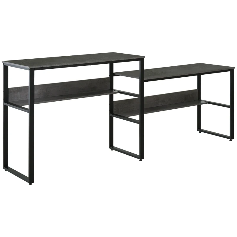 HOMCOM 86.5 Inch Two Person Desk Double Computer Table Writing Desk with Open Shelves Long Storage Workstation for Home Office Gray