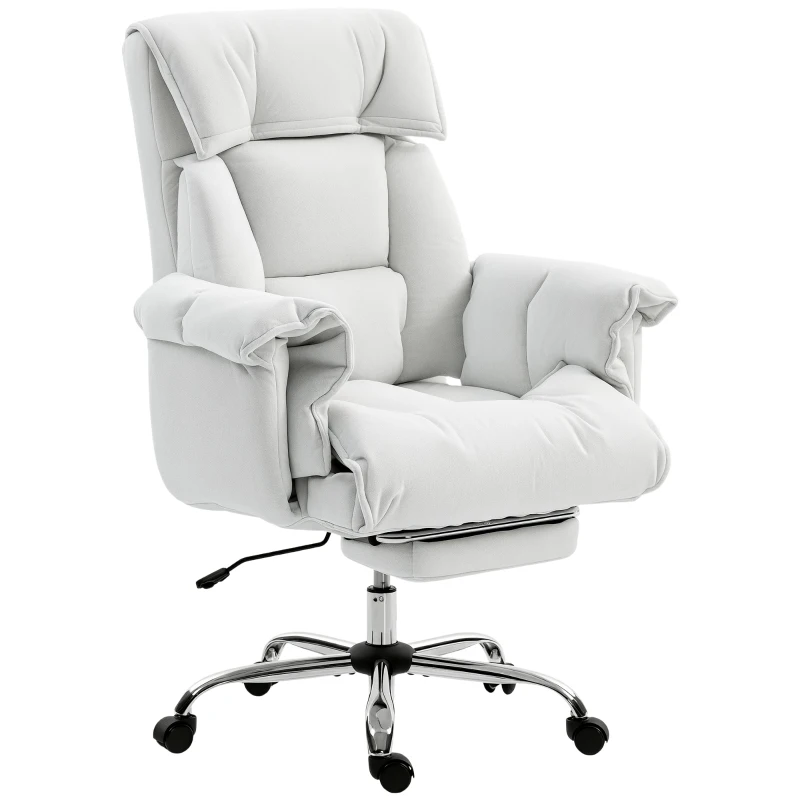 Struggling with discomfort after long hours at your desk? The HOMCOM office chair with footrest offers a personal solution. Its reclinable backrest and adjustable height adapt seamlessly for any activity, from focused work to a quick nap. Experience comfort with snow flannel fabric and high-resilience foam, all supported by a stable, reinforced frame, ensuring stability. This HOMCOM desk chair provides lasting peace of mind.